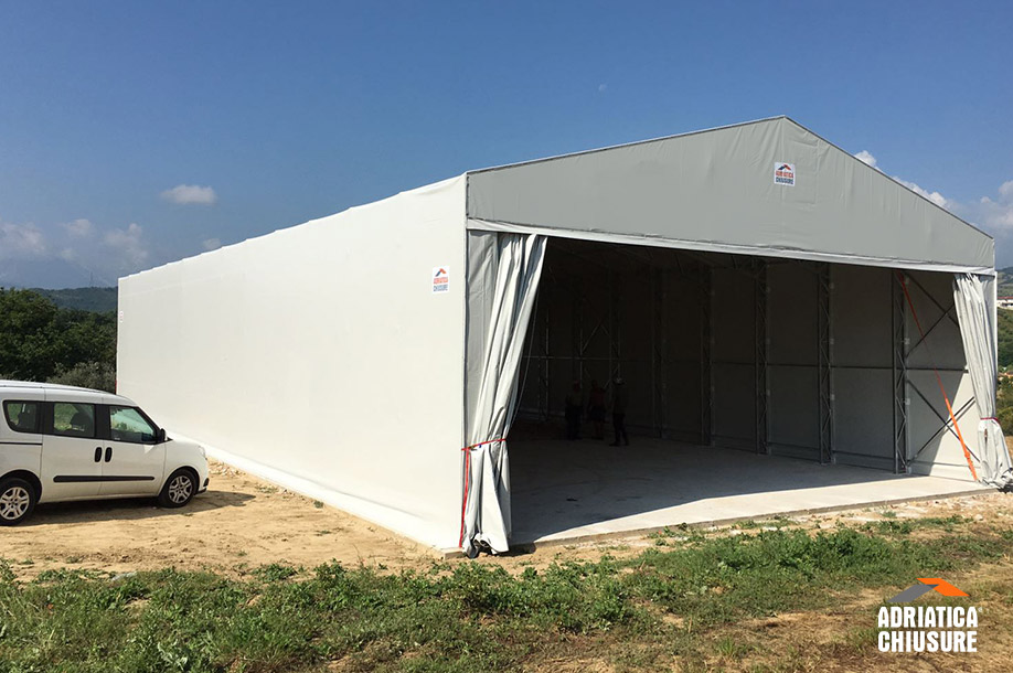 Il cliente ha scelto di personalizzare la propria stalla per bovini mediante un telo in PVC bianco e tende scorrevoli a doppia ripartita su entrambi i lati. Adriatica Chiusure si è occupata della progettazione, realizzazione, fornitura e posa in opera della struttura che è stata consegnata al cliente in tempi da record: 30 giorni a partire dalla richiesta d’ordine.