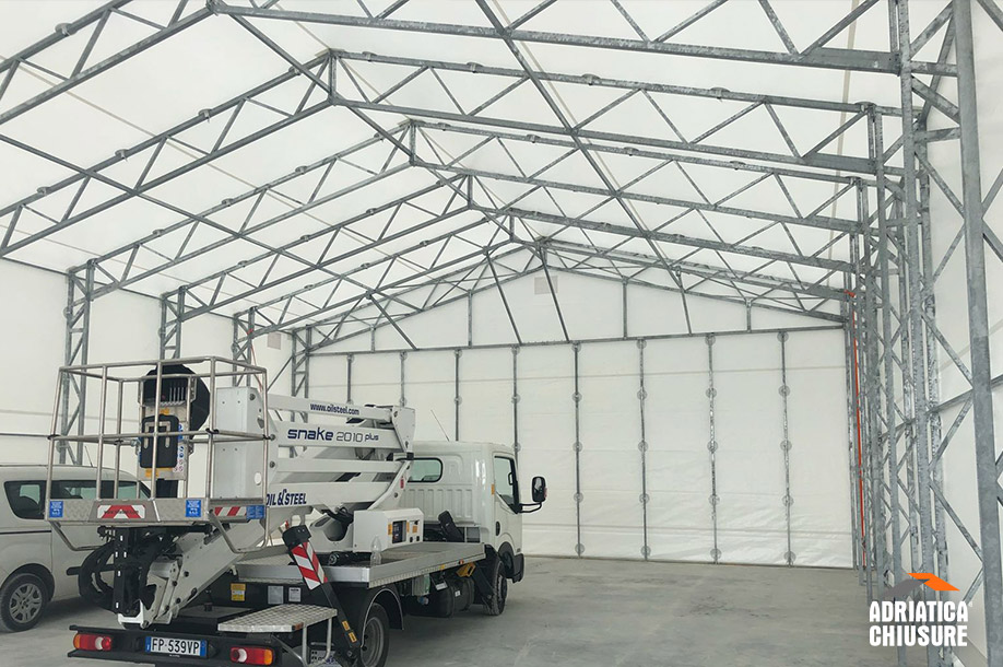 De Sanctis Edilizia non ha avuto dubbi e ha scelto Adriatica Chiusure per realizzare un’area deposito nei pressi del proprio stabilimento industriale in provincia di Teramo. La scelta è ricaduta su un tunnel mobile standard di 12 m di larghezza, 21 m di profondità e 4,2 m di altezza minima. Una struttura indipendente con misure predefinite che presenta il vantaggio di adattarsi a qualunque esigenza di copertura e caratterizzata da tempi di consegna ridotti rispetto a una struttura realizzata su misura.