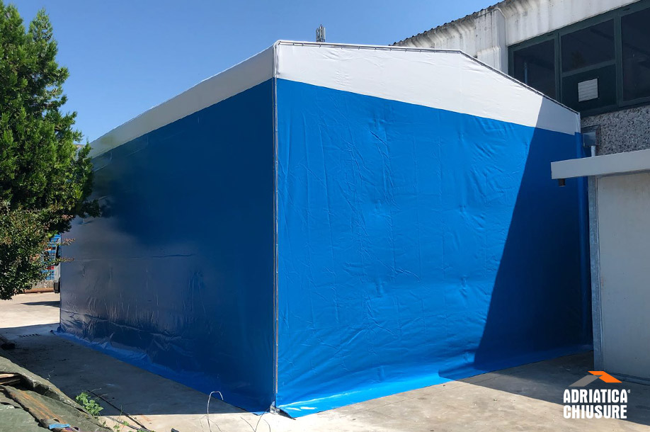 Tutte le componenti in carpenteria sono state precedentemente sottoposte a zincatura termica per garantirne la massima protezione contro corrosione e agenti atmosferici. La consegna del tunnel mobile è avvenuta in soli 45 giorni dalla richiesta d’ordine.